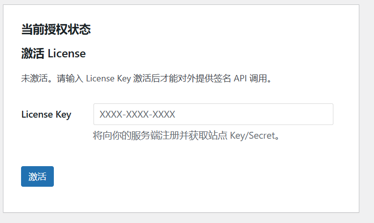 3. 在插件界面填写激活码,完成站点绑定